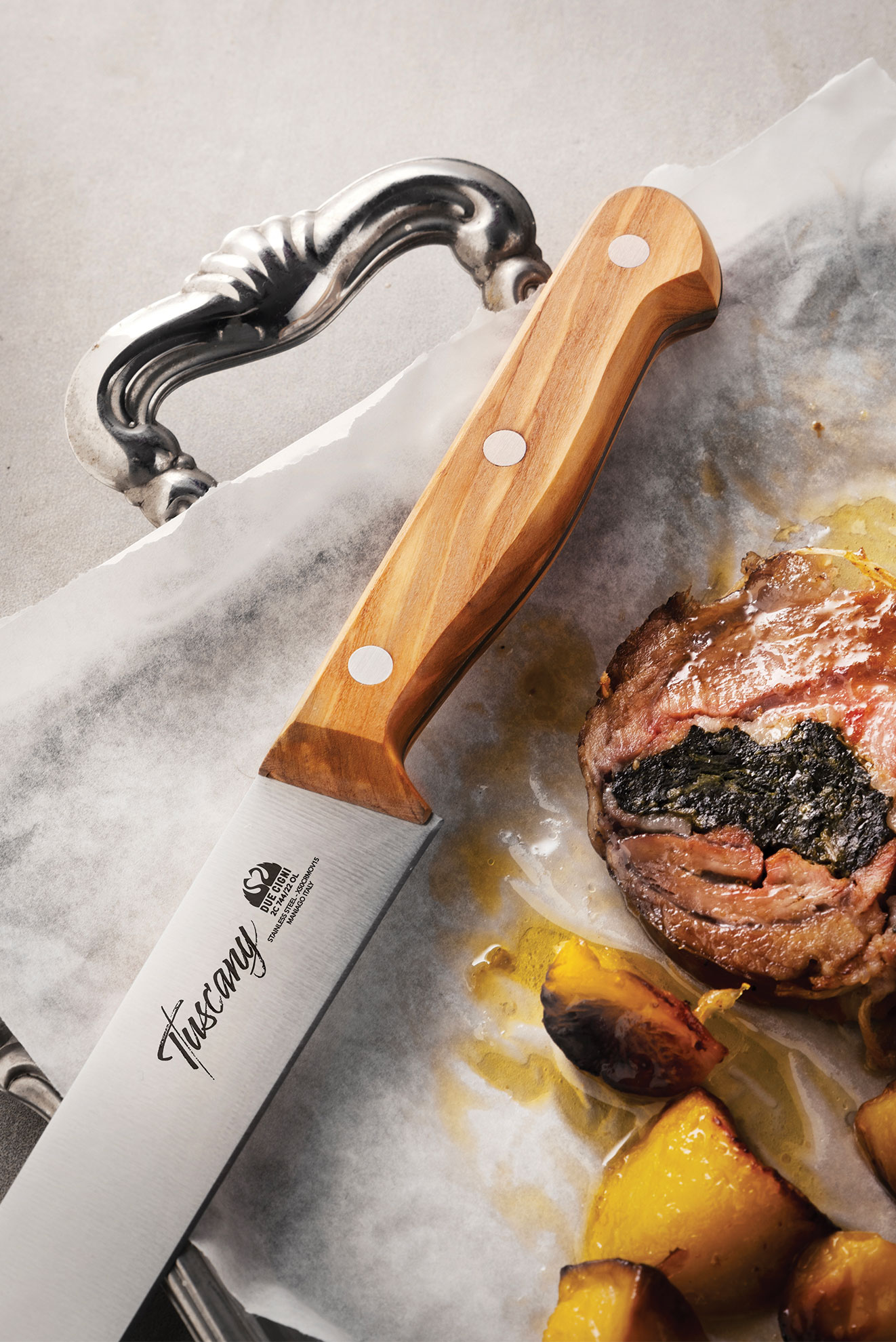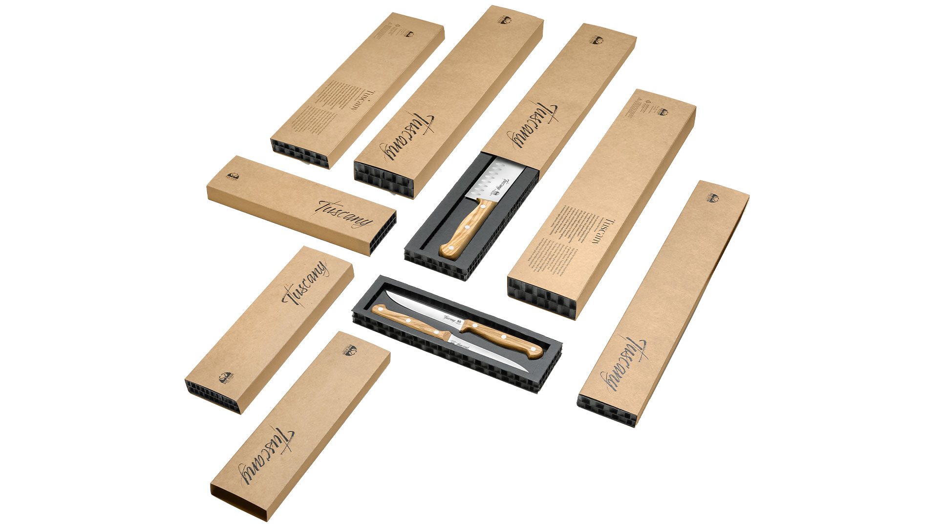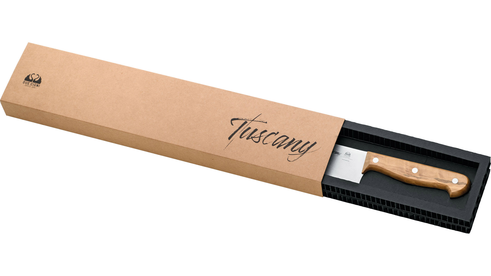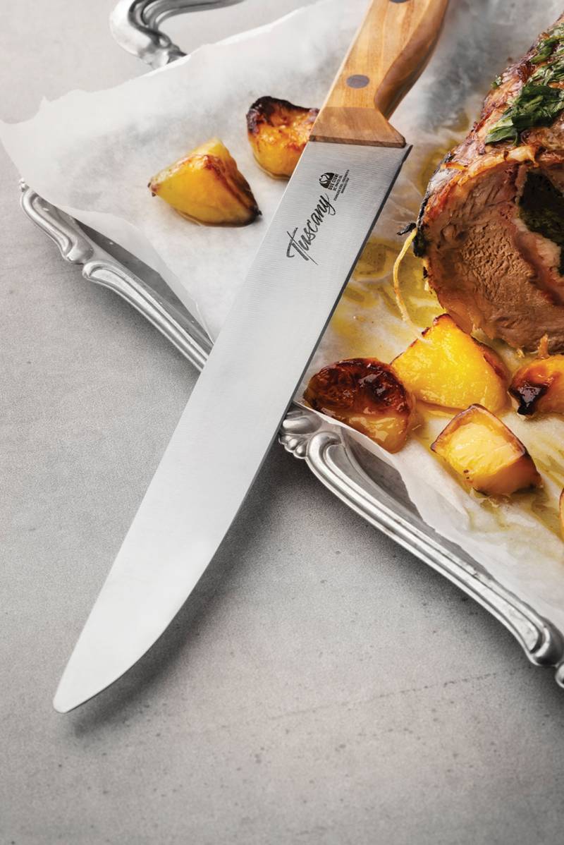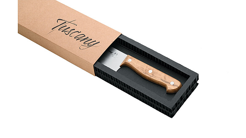The Tuscany line is born from the fusion of two places rooted in our family: Maniago and Tuscany. Blades made of stainless steel blend with the warmth of the olive wood handle, with its precious veins reminiscent of the hills of the Renaissance, adding uniqueness to each piece.